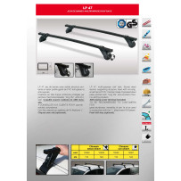 Montage sur barre de toit d'origine pour Hard Top et véhicules ayant des barres longitudinales d'origine - Ecartement de 86 cm (minimum) / 104 cm (maximum) - Poids : 5kg - Livré avec serrures anti-vol