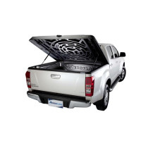 Les panneaux en aluminium texturé noir, remplis de mousse haute densité, sont reliés par une charnière en aluminium solide, garantissant résistance aux chocs et aux variations de température. Compatible avec les bacs de chargement "underrail" sans découpe et s’adapte aux bacs "overrail" après découpe.